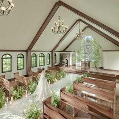 【ステンドグラスが輝く独立型チャペル】緑に囲まれた石造りのチャペルは自然光が差し込み、花嫁姿を引き立たせ、特別な瞬間がおふたりの誓いを彩ります。非日常空間で、ゲストの記憶に残る1日を。