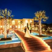 水と緑に彩られた中庭に佇むチャペル。扉を開くと、柔らかな自然光とシャンデリアの輝きに包まれた美しいステージが広がります。爽やかな緑がナチュラル感を添え、まるで海外リゾートのようなセレモニーが叶います。