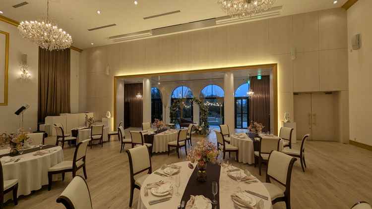 披露宴会場がとても素敵だった。内装がクラシカルな印象で結婚式らしい演出と合うなと思ったし、それでいてガーデンに繋がる扉を開け放つことができるので、緑が目に入るのがとてもよい。