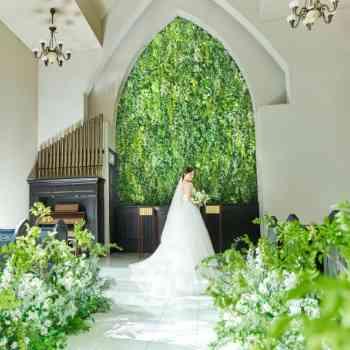 緑美しい幻想的な独立型チャペルで感動挙式自然光が差し込み緑あふれた空間が純白のドレスを美しく彩る