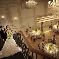 【大階段からの入場体験やプロジェクションマッピング体験】先輩花嫁の皆さんが必ず利用された階段入場!そして、最新技術を駆使した映像演出体験、先輩花嫁のエンドロール上映など、エヴァウインでの結婚式を体験!