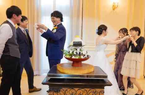 プロジェクションマッピングでのオープニングムービーからの入場シーンにこだわりました。また、ウエディングケーキではなく、おにぎりタワーを用意し、友人へおにぎりをバイトした部分もこだわりました。デザートブッフェをゲストへのおもてなしで用意した部分も私たちのこだわりです。ゲストにとても喜ばれてとても良かったです。