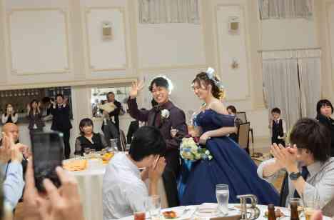 自分たちらしい色遣いにしたり、よりゲストの方々と近く話す時間を設けることができるように、あえて余興などをなくしたことがこだわったポイントです。また、ゲストへのサプライズの演出を多く取り入れました。ケーキ入刀後に、ゲストへのサプライズバイトや中座のエスコートなど、ゲストの方へ感謝の気持ちを表すイベントを行いました。
