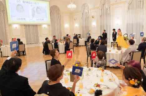 オリジナルのプロジェクションマッピングは見学に行った時から使いたいと思っていました。なので、1番最初の入場時に使用し、花火などダイナミックな演出にしました。 全員参加の格付けチェックを行いました。料理長さんにご協力頂き、オレンジジュースとチョコを用意していただきました。ゲストのみんなも真剣に悩んでくれました。