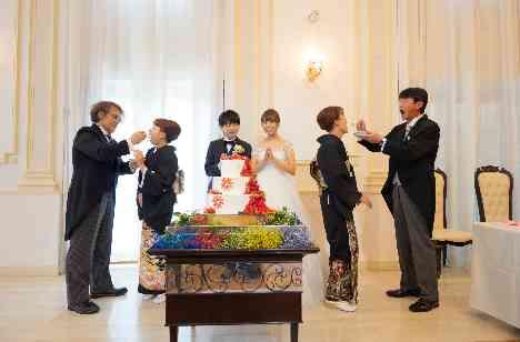 この度は誠におめでとうございます。 一番心配していたお天気もまさかの晴天でしたね。 ご披露宴がおひらきになる直前が大雨でまさに感謝カンゲキ雨嵐でした!考えてくださったウエディングケーキも嵐カラーのケーキ装花もとっても可愛かったですね! おふたりの大切な方たちが集まってくださったチャペルでの景色をおふたりの大切な宝物にしてくださいね。 末永いお幸せをキャスト一同心よりお祈り申し上げます。