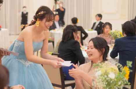 私達のテーマ“感謝”の思いを伝える式にしたいと思い、プロデューサーさんにアドバイスをもらい、一人ひとりに手紙をお配りする、“手紙ラウンド“をしました。また、手紙にチェキを貼ったことで、私達とゲストの思い出が振り返られる良い機会になったと思います。ゲスト同士で写真を見せ合い、笑い合う姿を見て、全員に手書きで手紙を書くのは大変だったけれど、やってよかったなと思いました。