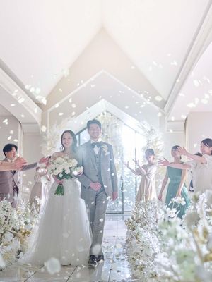 あたたかな自然光に包まれ大切な皆様に祝福される白のチャペル