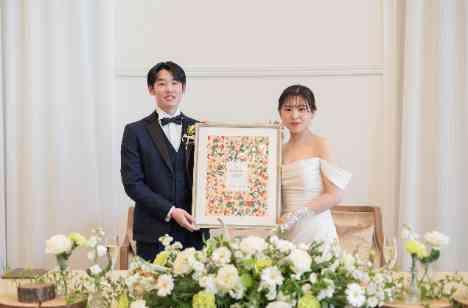ウェルカムスペースでは、アウトドアが好きなのでランタンやメスティンなどを飾りました。 また、ラウンジも飾れたため、クリスマス仕様でキャンドルライトやクリスマスツリーの布などを飾りました。 進行では、受付後にゲスト参加型の結婚証明書(ウェルカムボード)を行いました。結婚式が結んだ後にも、思い出が残り家に飾れるため、とても良かったです。