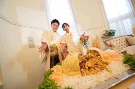自分たちの好きなアーティストの曲を取り入れ、 よりBGMへ注目してほしかったので、ゲスト参加型としてBGM当てクイズや再入場での歌唱サプライズを行い盛り上がりました! また、ウエディングケーキではなく、栃木の名物でもあり、2人の大好物でもある餃子で「ウエディング餃子」を選びました! シェフには何度も試作していただき、今までにないことをしたいという希望を叶えていただき感謝しきれないです!!