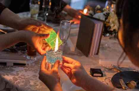 久しぶりに集まる友人たちも多かったので、 披露宴中の演出は「クレールストーリア」のキャンドルサービスのみとし、ゲストとの触れ合いの時間を優先しました。 当日はあっという間に感じたので、ゲストと過ごす時間を増やしてよかったと思います。 結びに、キャンドルに蓋をしてクレールストーリアでお礼のメッセージを伝えさせていただくことができました。