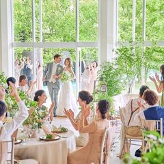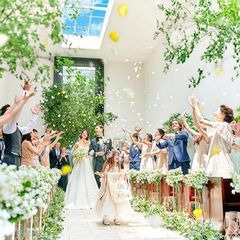 \New!選べる2つのスタイル/天井高8mから降り注ぐ自然光がおふたりを包む”空と森の教会” 緑溢れる空間で過ごす”ガーデン挙式” 青空のもと、祝福の笑顔に包まれるフラワーシャワー体験も可能♪