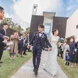- 真っ直ぐ伸びるバージンロードには空から光が降り注ぎ、花嫁姿を美しく照らし出します。
