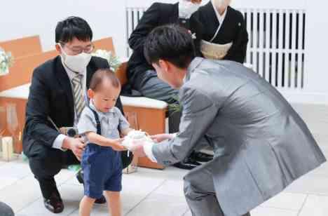 挙式は2つのことを意識して準備を進めてきました。 1つめは、しっかりと皆様の前で誓いをたてること。そのために、キリスト式・人前式と色々なスタイルがある中で、キリスト式にしました。 2つめは、ゲストも一緒に参加できる式にすること。可愛い甥っ子にリングボーイをお願いし、皆で見守りながら温もりを感じられる式となりました。