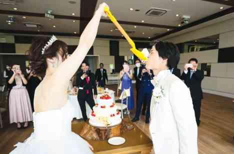 ◆披露宴のポイント 自分たちらしさを出すために ファーストバイトは持込のビッグスプーンを使って ゲストと一緒に楽しめるようにしました。 サンクスバイトでは、仲のいい友人に サプライズでケーキのおすそ分けをしました。 ドレス色当てクイズは、 ゲストも予想外の色を選べて楽しかったです。 どのシーンでもゲストと距離感近く、 盛り上がりました!