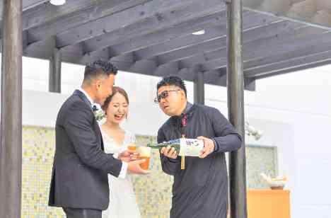 やはりガーデンウエディングです! 人前式にしたので、牧師役は新郎友人にお願いをしたり 結婚証明には、大好きなビールを使った”証明酒”にしました。 大切なゲストの皆様に囲まれ、 お天気にも恵まれた緑溢れるガーデンの中で迎えるガーデン挙式は憧れていた夢が叶った瞬間でした! たくさんの方を招待しましたが、ガーデンが広いのですべてのゲストの皆様をガーデン挙式に招待することができ良かったです。