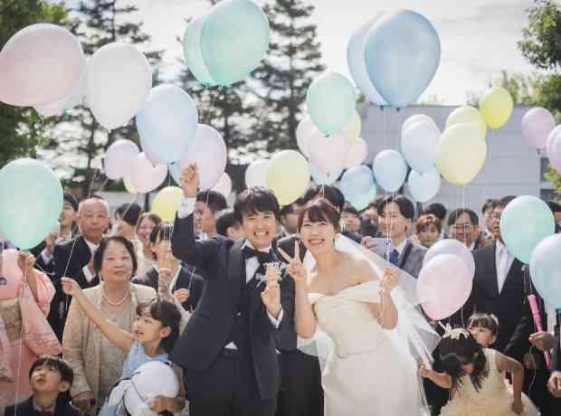 挙式の姪っ子と甥っ子にお願いしたリングキッズの登場シーンでは、会場中の全員が笑顔に溢れる温かい時間でした。遠方から来ていただくゲストも多かったので、ゲストの方にとっても思い出に残る式にしたいと思い、挙式後のアフターセレモニーではバルーンリリースを行いました。 お天気もよくゲストも楽しんでくれて良かったです!