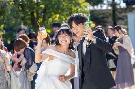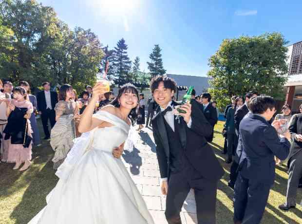 おふたりが何よりも楽しみにされていた ガーデンでの“ウェルカムパーティー” 当日は青空に恵まれ鮮やかな緑に囲まれた最高のロケーションの中 開放感あふれる乾杯で一日の幕が開けました! 皆様とグラスを合わせ 楽しそうに会話にしながら写真撮影を楽しまれるおふたり。 終始最高の笑顔を見せてくださったおふたりはもちろん ゲストの皆様も楽しまれている姿がとても印象的でした。