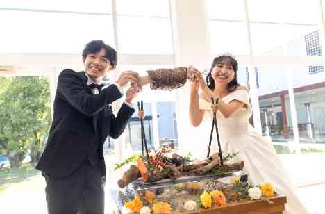 自然が大好きな先生カップルの決め手は、11月の秋風を感じる開放的なガーデン。乾杯やビュッフェを庭で楽しむ、自由度の高い貸切空間に一目惚れされました。会社関係は呼ばず、ミセスやRADの曲に包まれるアットホームな人前式を。ゲスト想いのおふたりもリラックスして過ごせる安心感と、「4ヶ月で叶える効率的かつ濃密なサポート」が、おふたりの理想を形にする決め手となりました