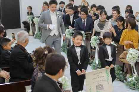 両家の母にサプライズをしたいと思っていたので、挙式では新郎母へ【ジャケットセレモニー】をサプライズでお願いしました。 ジャケットセレモニーの際に新郎の母から新郎へ「おめでとう」と言葉をかけてくれたのが本当に嬉しかったです! また、フラッグBOYやリングBOYを子供たちにしてもらいました。 みんながほっとする式になってよかったです^^