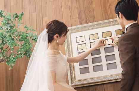 「自分たちらしさを出しつつゲスト全員に楽しんでほしい!」を意識して準備を進めました。 アートが好きなので結婚証明書はキャンバスアートを採用。ゲストの方に一本ずつ線を引いていただき、全員参加型で行いました。 BGMは各テーブル・友人にゆかりのある曲を取り入れたり、お誕生日が近い方にはバースデープレートをお願いしたり…。ひとりひとりの事を考えて準備を進めました!