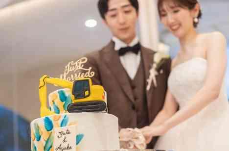 ウェディングケーキには2人の仕事に縁があるものを採用したいと考えました。 実際に自分たちらしさを象徴できるものを、マジパンで作ってもらって乗せました! 披露宴中控えめになりがちな職場の方がケーキの周りによって来てくださり、「すごいね!」と盛り上がっていただけました!驚きを届けることができたと思います。 結果、クオリティの高さに会場中大盛り上がり!でした!