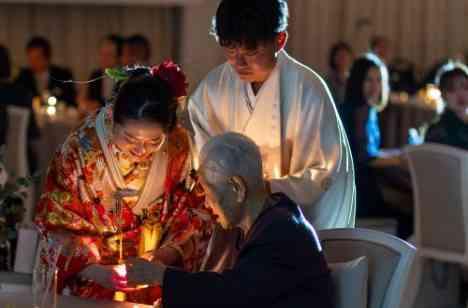 ・披露宴、おもてなし 来てくださった方に日頃の感謝を伝えて、 喜ばせたい、楽しい時間を動いてもらいたいその一心で、いろんなイベントを考えました。 カラードレスではなく色打掛を着て再入場したり、キャンドルブレスという幻想的な演出をしました。ゲスト参加型にもなったので、みんなで一緒に楽しむことができました。