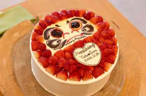 年末の式だったので、私たちはケーキ入刀ではなく達磨ケーキに筆で目を入れるようにしたいと思いプロデューサーさんに提案しました。 そしてもう1つこだわったのが、挙式後のブーケトスをなくし変わりに〝お菓子まき〟をした事です。 ゲストの皆様が楽しめる式にしたかったので、お菓子まきはとても盛り上がったのでやって良かったと思っています!