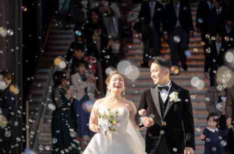 天気予報は曇りでしたが、青空が見えていたことと外に出ると隠れていた太陽がタイミングよく出てきたこと、全てが結んだ後の初雪。たくさんの奇跡が重なった日になりました。 半年以上、プロデューサーさんと準備をしてきて私たちがやりたいことを全力でサポートしたりアイディアを出してくれたからこそ、当日式が結んだ後ゲストの方々からは""2人らしい楽しい式だった“という感想を多くいただけました。