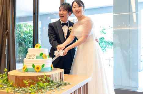 スマイル当日は8月だったので、ひまわりをたくさん取り入れていただきました。ウエディングケーキもひまわりのデザインで作っていただき、想像以上に可愛いケーキで嬉しかったです。 披露宴ではゲストの皆様にも楽しんでいただけたらと「ライブキャンバス」を演出として取り入れました。投稿していただいた写真の中から、ライブキャンバス大賞を選び、盛り上がる事ができたのではないかと思います。