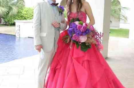 私たちは夏が好きでリゾートの雰囲気にしたかったため、会場はセイシェルにし、全体的な色合いもリゾートをイメージした物にし、会場装花やブーケもピンクや黄色、オレンジ等トロピカルをイメージした物にしました。