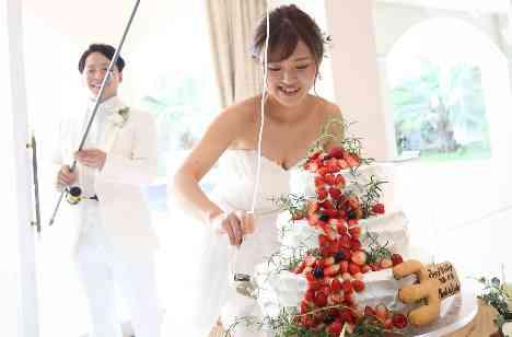 ウェディングケーキは苺をたくさん取り入れ、イメージ画像を見せながらスタッフさんと細かく打ち合わせを重ねてきました!生クリームの絞り方やフォーク型クッキーなど、イメージ通りでした!サンクスバイトも釣りが好きな方に釣り竿バイトとして竿を使った演出も大好評で凄く盛り上がってくれてよかったです! ドレス色当てゲームもゲストの方々が楽しんで参加して下さったので、企画した私も凄く嬉しい気持ちになりました!