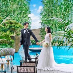 【水と光の独立型チャペル体験】ホテルでありながら開放感の溢れるチャペルにて挙式入場を体験いただけます。自然素材のチャペルは、自由度の高い挙式の形を楽しんでいただけます。挙式後はテラスで過ごす時間も。