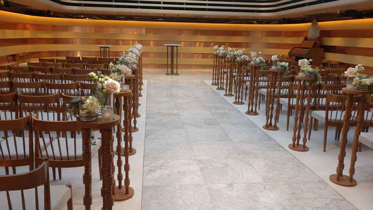 少人数40名程度にもちょうどよい会場レイアウトができそうで良かった。明るく、カジュアル過ぎずたが、上質な雰囲気だった。 各会場でゲスト目線、新郎新婦目線での確認ができた。