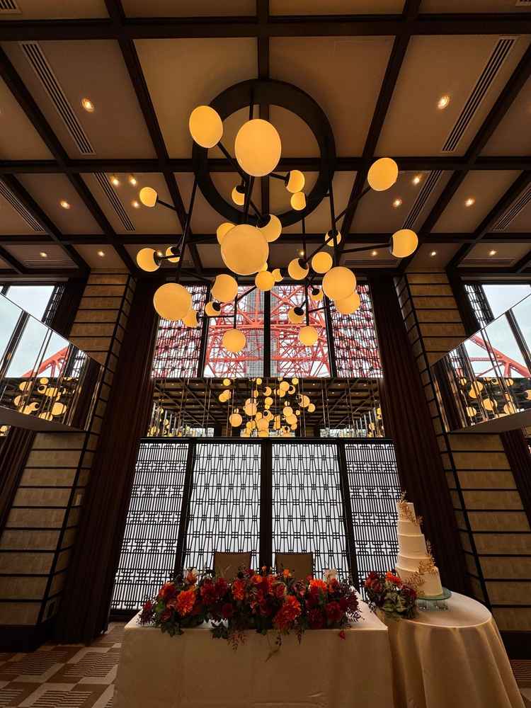 会場の雰囲気は良く、披露宴会場やチャペルも作り込まれていて東京タワーの見せ方がすごかった。スタッフの方々が要所でお出迎えしてくださり活気のある雰囲気でした。