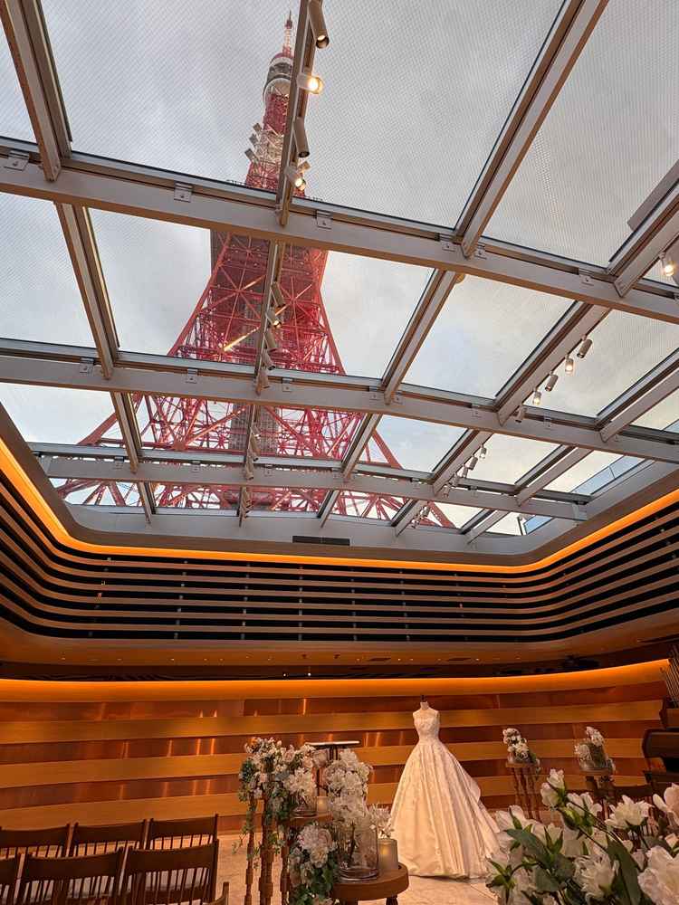 東京タワーが好きで魅力的な会場だったが、披露宴会場のデザインが安っぽく感じてしまった、チャペルも披露宴会場も天候に左右されそうだと思った