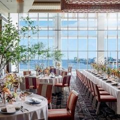 【全室オーシャンビューの美景】披露宴会場のご見学では会場装花、会場の照明、音響など当日さながらの雰囲気をご体感いただけます。神戸の景色を眺めながらのパーティーは特別な想い出に。