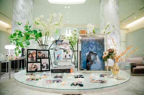 挙式が結びゲスト様が次に踏み入れた部屋にはおふたりのお写真や可愛いらしい飾りつけが並ぶプライベートラウンジが。この日のためにひとつひとつ心を込めておふたりでご準備されたそうです。お花や小さな小物までこだわってお作りになったおふたりの飾りつけを見てゲストの皆様もたくさんお写真をお撮りになっておられました。