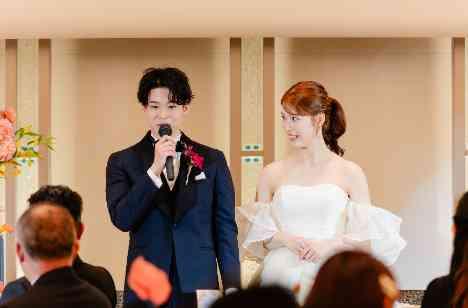 新婦様から新郎様へのファーストバイトは「一生美味しいものを作ります」という意味がございます。また、新郎様から新婦様へのファーストバイトは「一生食べるものに困らせない」という意味がございます。他にも同時に召し上がっていただく「同時バイト」やご自身で召し上がっていただく「セルフバイト」などもございます。おふたりらしい演出でお子様も交えて楽しまれておりました。