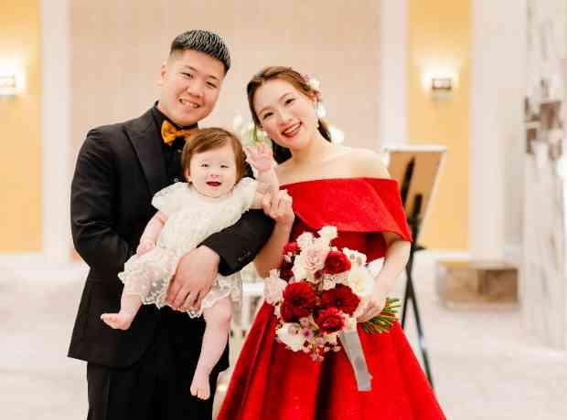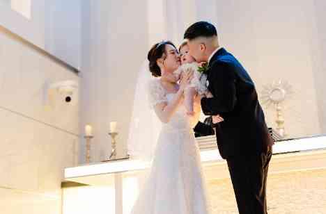 挙式中盤、誓いのキスの場面でおふたりのお子様が祭壇へ。 おふたりからの愛のある誓いのキスが贈られます。 今後も健康に、すくすくと育ってほしいお気持ちをキスへ託します。 また、ラジコンカーに乗ってリングドッグも登場。 おふたりの結婚式を祝福してくれているかのよう。 ご列席の皆様も感動の中に思わず笑みもこぼれます。