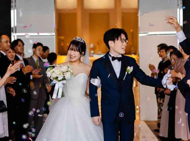 永遠をかたちにする、指輪交換のセレモニー。 新郎から新婦へ、そして新婦から新郎へと想いを込めてそっと指輪に託すその瞬間。 左手薬指に触れるぬくもりは『これから先の人生を共に歩む』という静かで確かな誓いを映し出します。 会場に流れる穏やかな空気の中、見守るゲストの視線と祝福が重なり、ふたりの絆はより強く、より深く結ばれていきます。