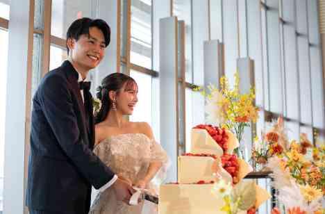 柔らかな光に包まれながら、いよいよ迎えたケーキ入刀の瞬間。 新郎新婦はゲストのカメラにそっと視線を向け、祝福を受け止めるように、晴れやかな笑顔を見せてくださいました。 ナイフがケーキに入ると、会場にはシャッター音とあたたかな拍手が重なり、この日ならではの高揚感が広がります。 おふたりの自然体の笑顔が印象的な、幸せの象徴ともいえるワンシーンとなりました。