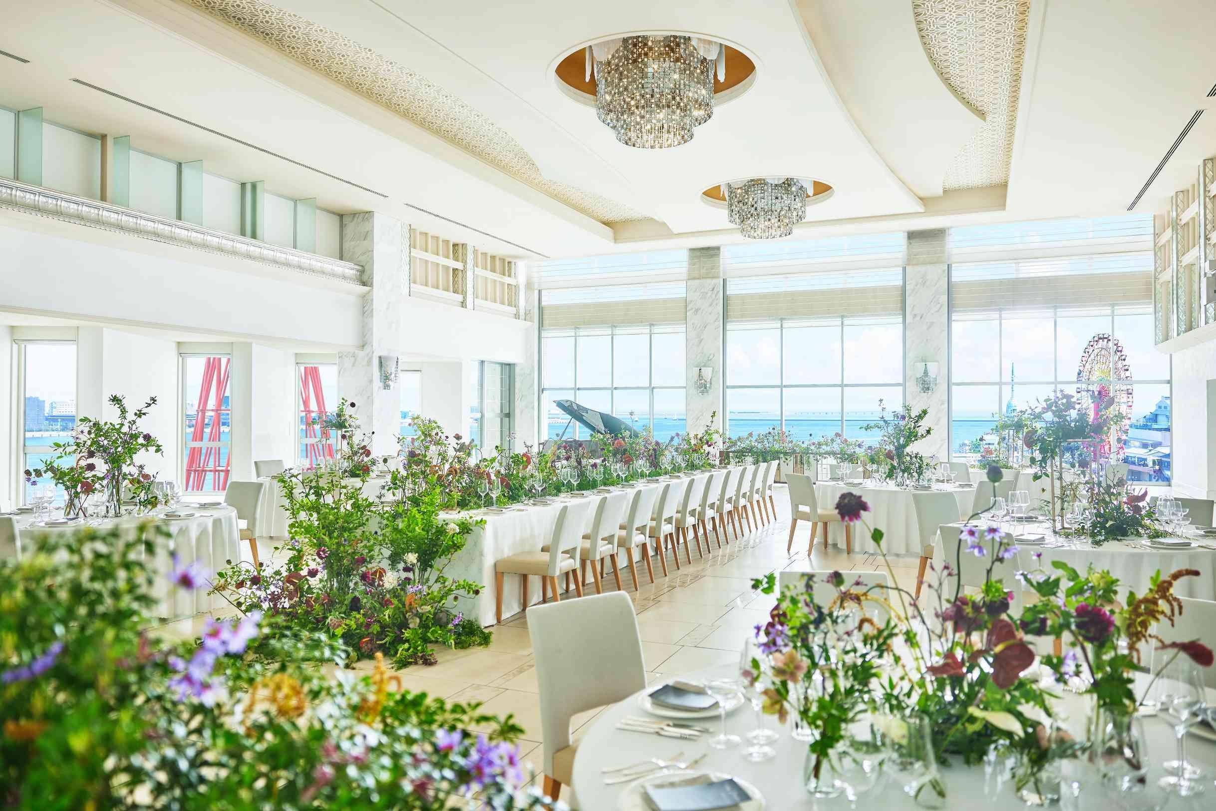 一歩中に入った瞬間から誰もが特別な気持ちになる、祝福のための洗練された場所。 敷地内には150台収容可能の無料駐車場を完備。さらには三ノ宮駅と新神戸駅からの無料シャトルバスもご用意しております