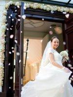 感動的な挙式のあとは、ゲストからのフラワーシャワーとシャボン玉がおふたりを祝福。今までの人生の中でお世話になった方々からのフラワーシャワーは何にも変えられない幸せな瞬間。舞いあがる花びらと「おめでとう」の祝福や笑顔に溢れる憧れのイチオシ演出。