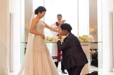 挙式で交わした誓いの言葉を閉じ込めるという意味がある “誓いのキス” キスをする場所によって意味もあり 手の甲には“敬愛・尊敬”といった意味があります とても素敵でドラマチックなシーンになりました♪ トレーンベアラー・リングガールなどおこさまにも沢山お手伝いをしていただき 素敵なセレモニーになりました♡