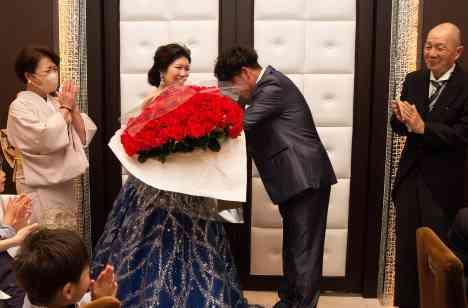 新郎様から新婦様へ愛を込めて 100本のバラをプレゼント♡ 花言葉は“100%の愛” 思いもよらぬサプライズに新婦様も涙を流されていました...♡ サプライズ直前まで新郎様とお打ち合わせをさせていただきドキドキでしたが...♡ さすが新郎様!カッコよく決めてくださいました!! ゲストのみなさまから沢山の祝福をいただき幸せいっぱいのお二人♡