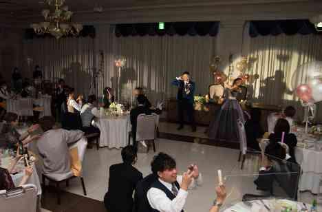 新郎様のご職業が美容師様でお色直しの際、 新婦様のロングヘアをばっさりカットしていただき イメージチェンジをして再入場✨ 入場した瞬間、新婦様を見てゲストもびっくりです!! また、入場時はおふたりでK-POPの曲に合わせてダンスをしました ゲストはペンライトを持って盛り上げていただきました!