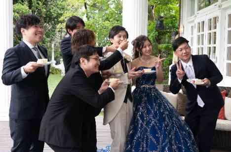 挙式にて新郎様がご入場される際、お母様よりジャケットセレモニー 新婦様はお母様よりベールダウンをおこないました お父様から新郎様へのバトンタッチのシーンでは少し涙ぐんでいらっしゃいました 披露宴入場後はゲストと一緒に乾杯🥂 お2人がデザインを考えたウェディングケーキ! 皆さまの前でケーキ入刀、そしてファーストバイトをおこないました!