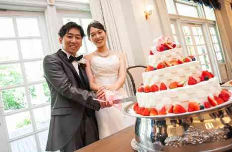 ゲストの方々のあたたかい拍手とともにおふたりご入場です♪挙式が結び緊張もほぐれたはずがまたまた緊張のお二人!でもゲストのお顔が見えると緊張もほぐれ素敵な笑顔に!そしてウェディングドレス姿でケーキ入刀おふたりが選んだデザインのケーキで!ゲストの方もシャッターチャンス!定番の演出でも盛り上がるのがファーストバイト!新郎様にはもちろん新婦様の愛情が伝わるように大きなスプーンで