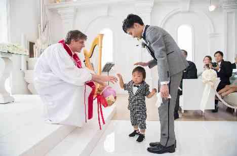 証明書はすべてオリジナルでお二人が手作りしました 涼しげな印象の証明書がとてもオシャレです♪ みなさまに見守られ証明書にサイン フラッグキッズやリングキッズの登場もあり温かい挙式になりました