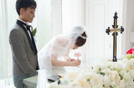 お二人一番のこだわりの演出 受付にてゲストのみなさまに入れて頂いたフルーツに お二人でワインを注いで果実酒の完成です! ゲストの方々の参加型演出でとっても盛り上がりました ワインを注ぐ姿がとっても素敵です